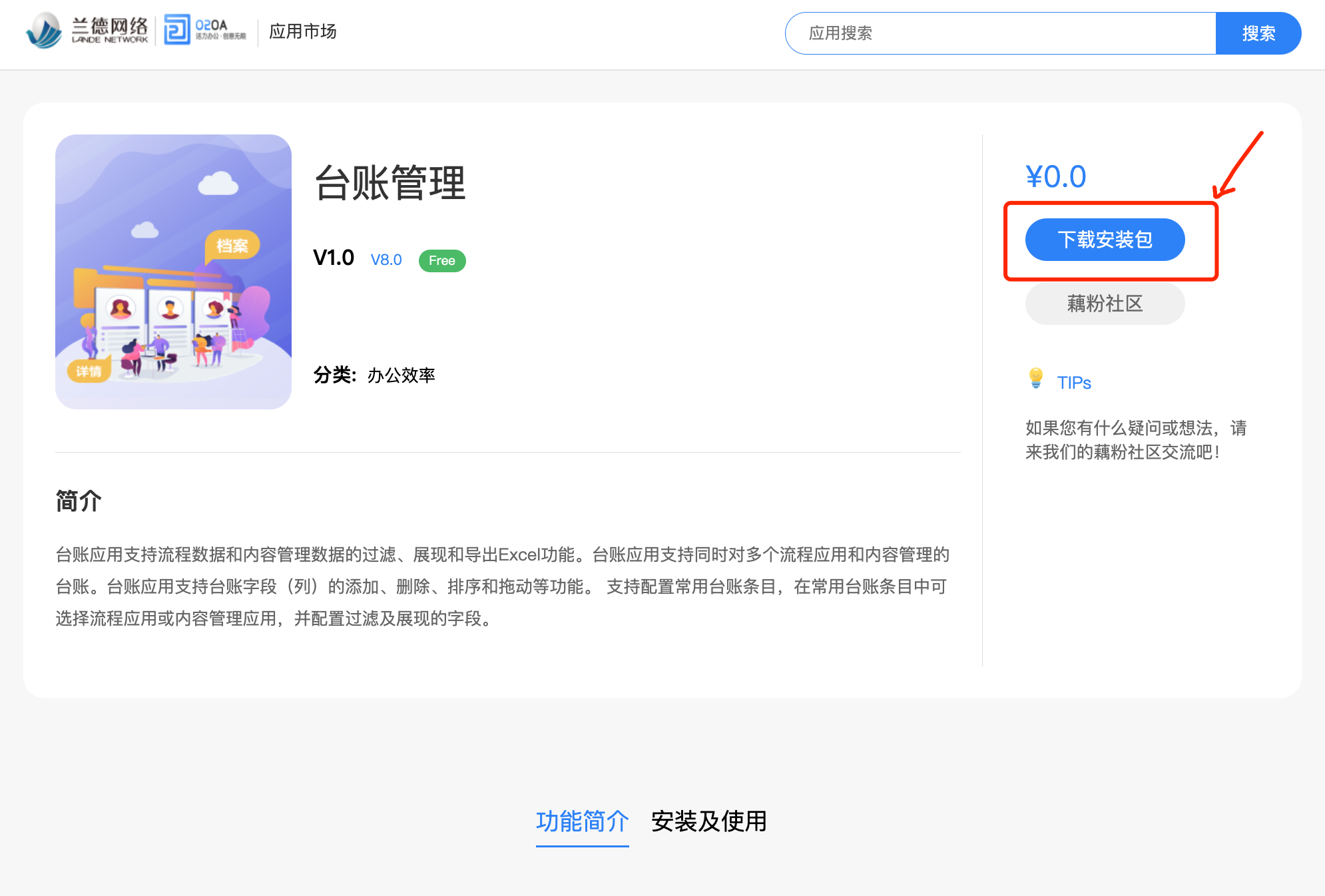 进入到应用市场,选择要离线安装的应用,点击“下载安装包”