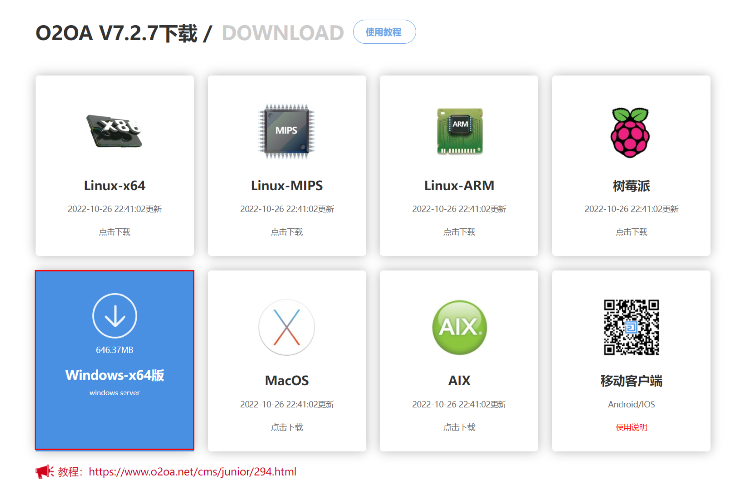 O2OA支持windows/linux/macos/aix操作系统,下载相应的安装包版本。