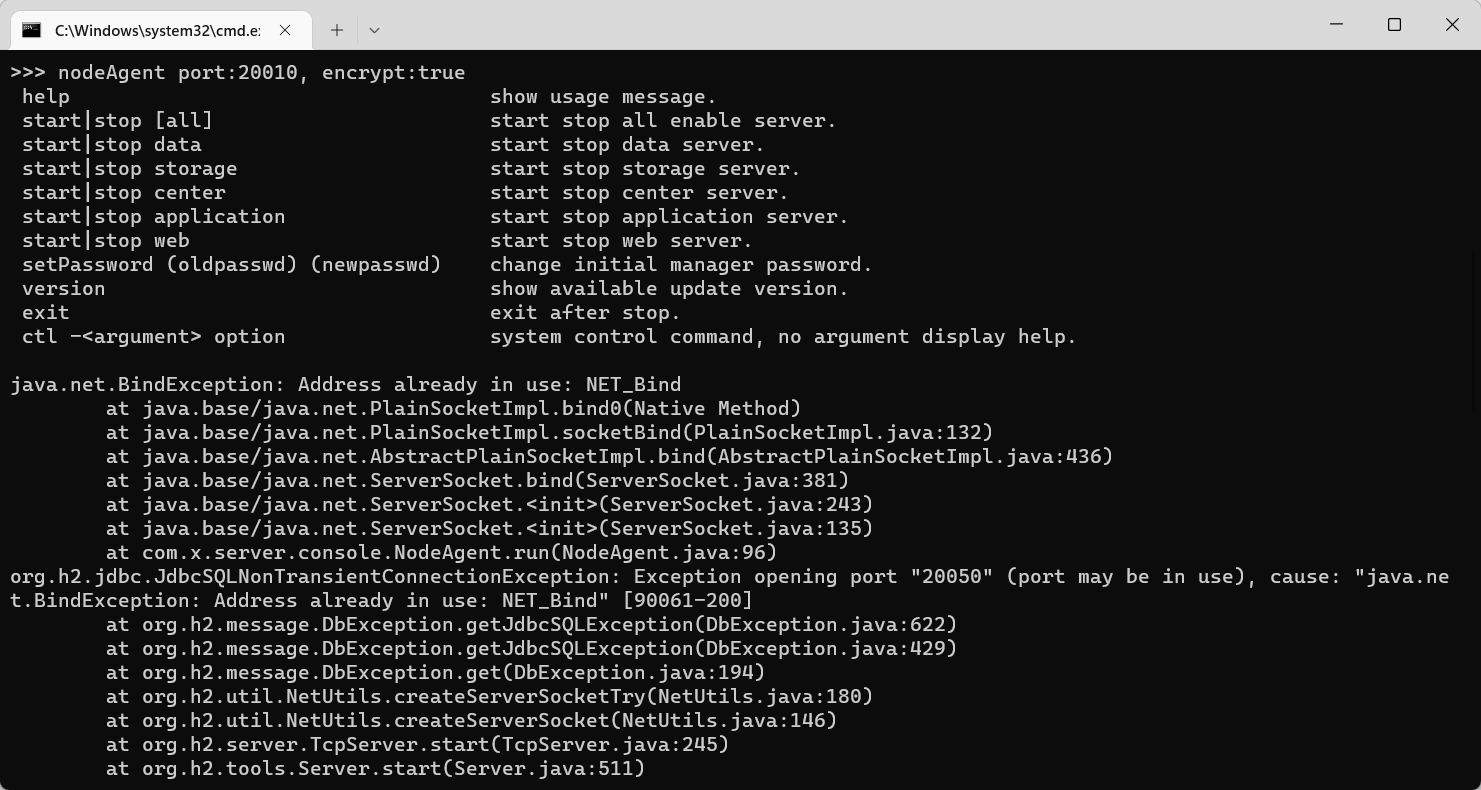 application server start completed. prot:20020 ************************************** java.io.IOException: Failed to bind to 0.0.0.0/0.0.0.0:80 at ort......