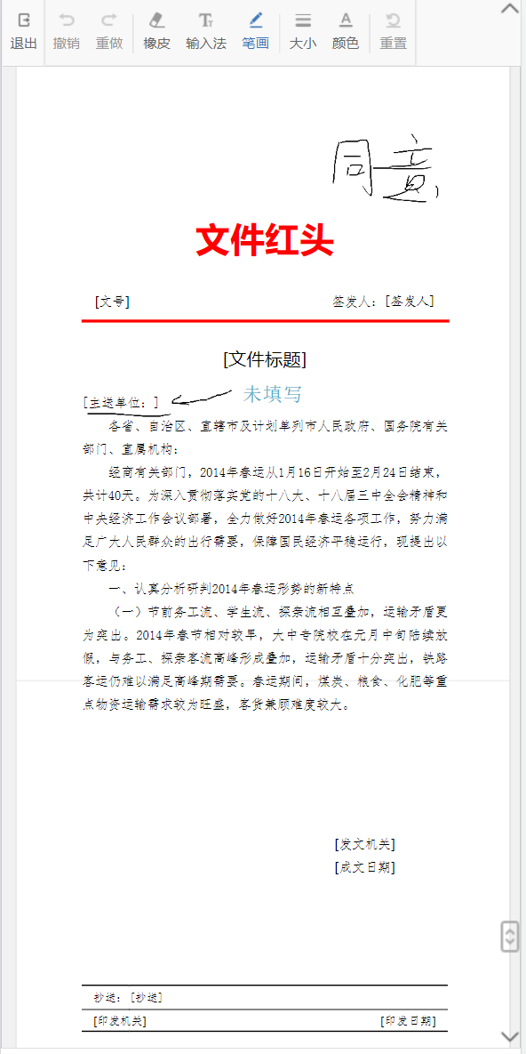 手写签批是建立公文编辑器组件基础上,允许用户在公文内容上进行手写、签名、批注、文字输入、擦除的一系列功能。手写签批功能可以直观的展现每位处理人对公文内容的批注,有效的提高办公效率。