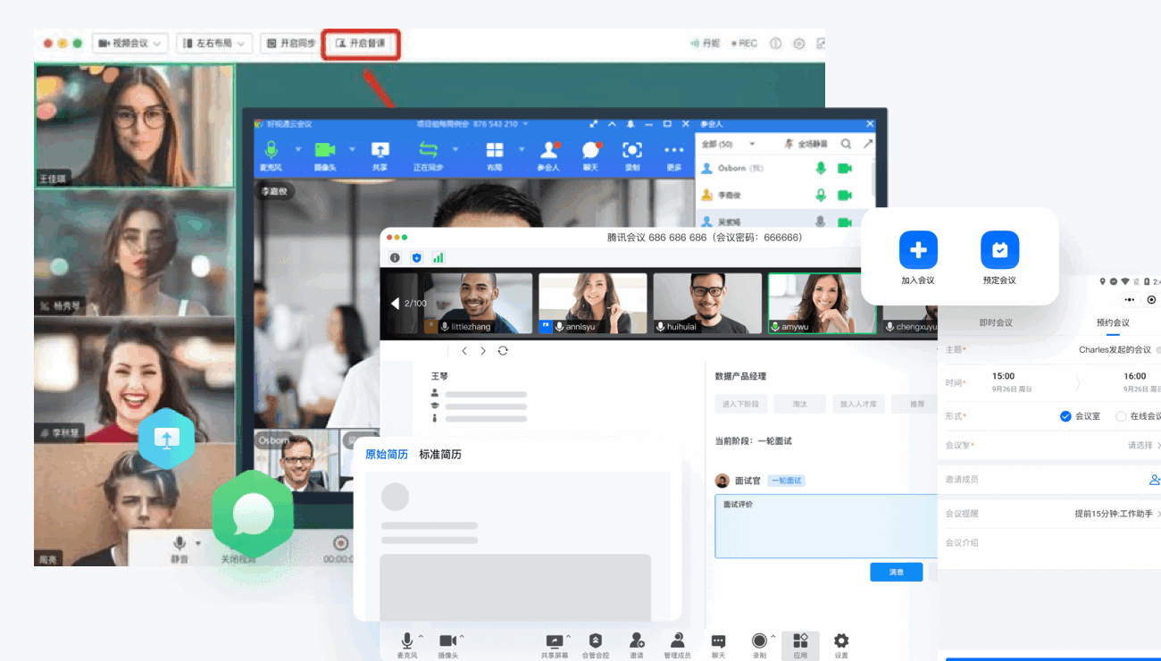 平台支持与腾讯会议集成,让企业轻松实现随时随地开启在线会议。为企业提供安全可靠的云端会议解决方案,开启跨区域多场景的云端沟通协作新体验。